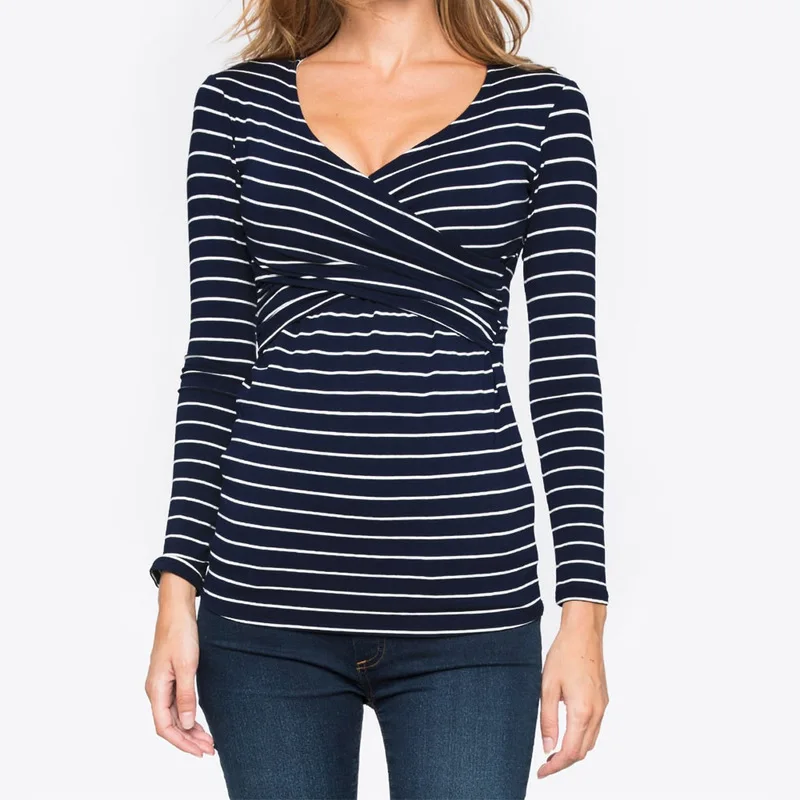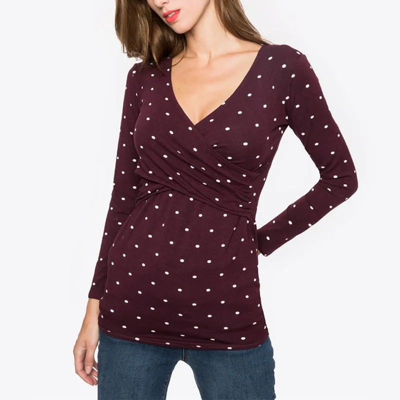 Breastfeeding Clothes Women's Maternity Tee Nursing Wrap Top Printed Flying Crane Double Layer T Shirt Pregnant Woman Clothing look the best product that related to